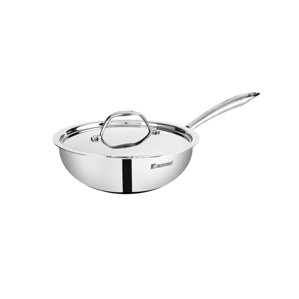 BERGNER Argent Mini Triply Wok with Lid – 18 cm 1.3 Ltr