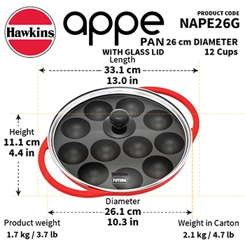 HAWKINS DIE CAST APPE PAN 26 CM, 12 CUPS WITH GLASS LID (NAPE26G)
