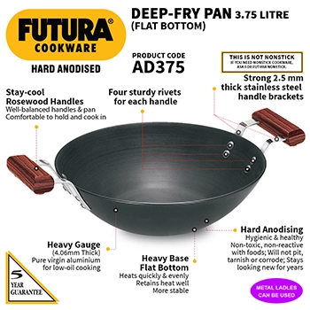 HAWKINS HARD ANODISED DEEP-FRY PAN (FLAT BOTTOM) 3.75 LITRE