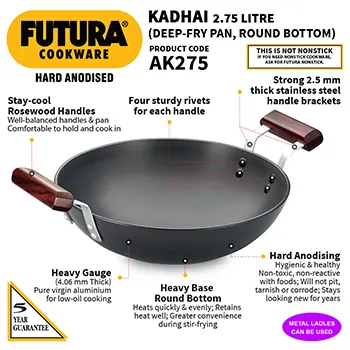 The Pan is ideal for sautéing and stir-frying foods using minimal quantities of oil. It can also be used for deep-frying and for cooking gravies, curries and sauces