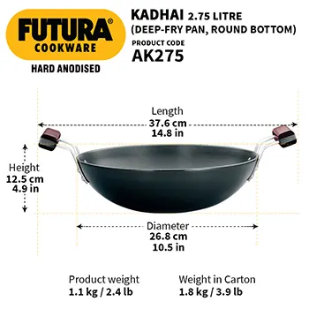 HAWKINS HARD ANODISED DEEP-FRY PAN (ROUND BOTTOM) 2.75 LITRE