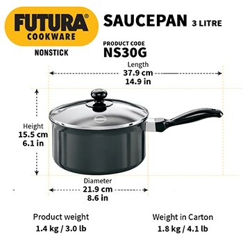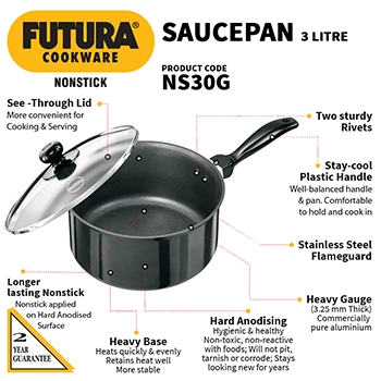 HAWKINS NONSTICK SAUCEPAN 3 LITRE WITH GLASS LID (NS30G)