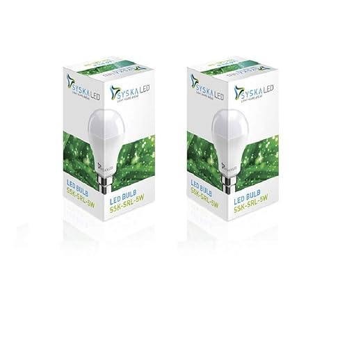 Brand SYSKA Light Type LED Special Feature Energy Efficient Wattage 5 Watts Bulb Base B22D Specific Uses For Product Lamp Light Colour White Voltage 90 Volts Net Quantity 2 count Colour Temperature 6500 Kelvin